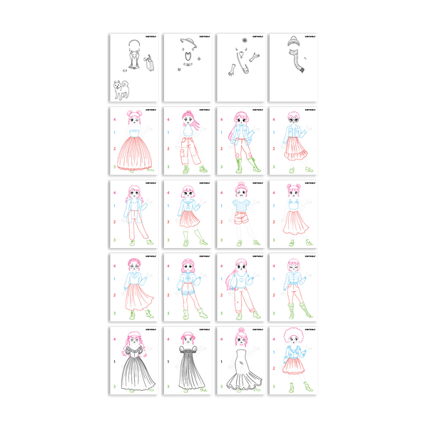 Met KIDYDRAW PRO worden kinderen echte stylisten in spe. Dankzij een ingenieus systeem van stickers kunnen ze silhouetten, outfits, accessoires en motieven eindeloos combineren – meer dan 1000 combinaties zijn mogelijk, net als in een echt modeatelier. Het lichtbord is dubbelzijdig en biedt ruimte voor vrije, leuke en creatieve expressie.