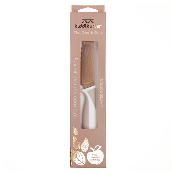 Het Kiddikutter-mes werkt als een zaag, dankzij het roestvrijstalen en gekartelde lemmet snijdt het voedsel, maar geen kindervingers. Het KiddiKutter kindermes is geschikt voor rechtshandige en linkshandige gebruikers.
