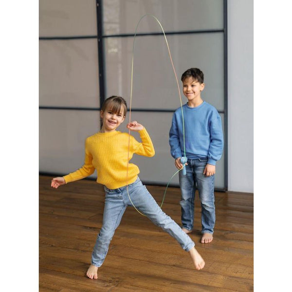 Met één simpele beweging brengt de lassowerper een kleurrijk touw in een vloeiende, roterende beweging. Het lijkt bijna magie – maar het is pure natuurkunde! Terwijl kinderen proberen het touw te laten cirkelen, ervaren ze op een leuke manier hoe zwaartekracht, snelheid en momentum samenwerken.