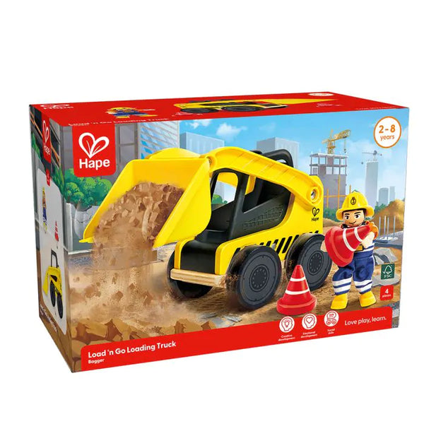 Met de Load 'n Go Loading Truck van Hape beleeft je kind de ultieme bouwplaatsavonturen! Deze robuuste laadwagen, gemaakt van FSC-hout en kunststof, heeft een realistische laadklauw waarmee kleine bouwers objecten kunnen optillen en verplaatsen. Inclusief een bouwvakker en twee verkeerskegels om het spel compleet te maken!