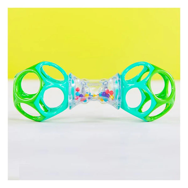 The Rollin' Rainstick Rattle brings the soothing sound of rain to life, stimulating baby's senses and bringing joy. The rattle, with its colorful beads that move and spin, encourages the development of fine motor skills.