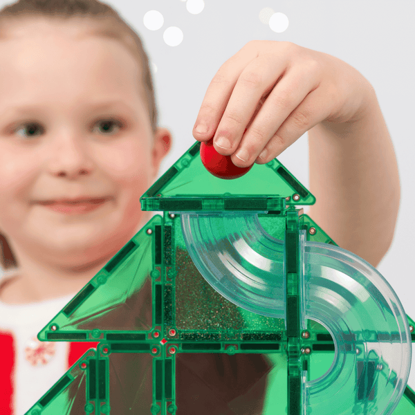Deze limited edition-set bevat exclusief ontworpen, doorzichtige, gecanneleerde buizen in een spannende reeks onderdelen, waaronder rechte, glijdende en spiraalvormige elementen, voor de vreugde van wervelend, ronddraaiend ballenspel tijdens de feestdagen. De set bevat een verscheidenheid aan zorgvuldig geselecteerde magnetische tegelvormen en verbindingsvierkanten in de traditionele kerstkleuren groen, rood en geel, plus een vleugje magie met een selectie groene glittertegels – alles wat je nodig hebt om een sprankelende kerstboom te maken. En het mooiste is: je kunt hem weer opbouwen en er jarenlang plezier van hebben!
