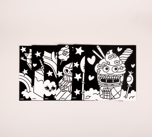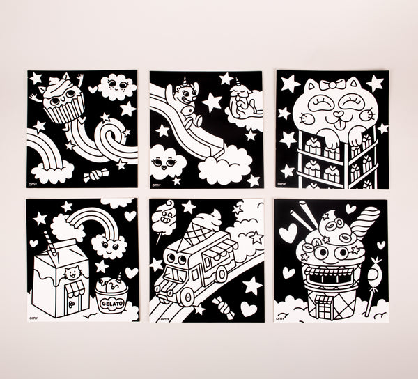 Kom en ontdek het Kawaii-universum, vol plezier en fantasie, door middel van deze 6 fluwelen kleurplaten!