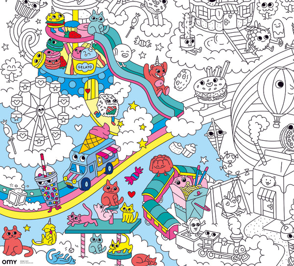 Een artistieke ruimte zonder grenzen om alleen of met anderen te spelen en te kleuren, om uit te vouwen op de vloer, aan de muur te hangen of als tafelkleed te gebruiken.