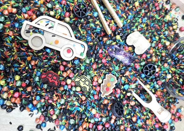 - Mix van beide soorten Sensory Mix (speelrijst en speelparels)