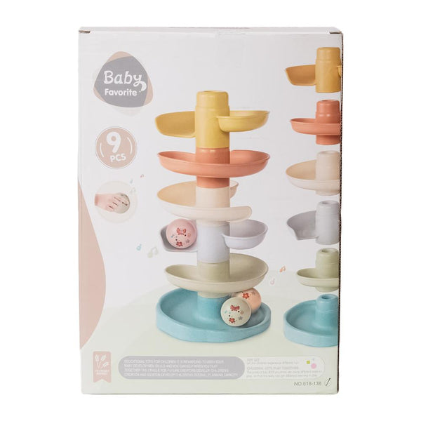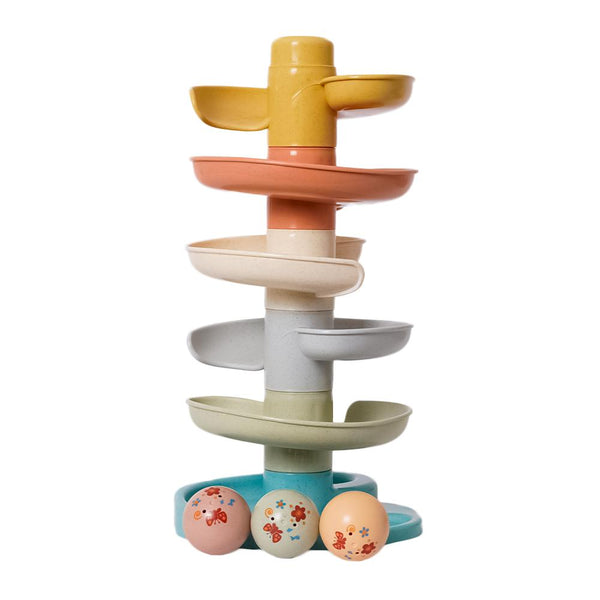 Laat de bal maar rollen! De spiraaltoren gemaakt van bio plastic zorgt voor eindeloos veel speelplezier. Deze kleurrijke set bestaat uit 6 subtiel gekleurde delen die jouw kleintje gemakkelijk op elkaar stapelt. Laat de ballen een voor een op de bovenste laag vallen en kijk hoe ze achter elkaar naar beneden rollen en slingeren. De spiraaltoren draagt bij aan de ontwikkeling van de hand-oog coördinatie en leert kleintjes over oorzaak en gevolg, waarmee het zowel leuk als leerzaam spelen is. Bij de spiraaltoren zitten standaard 3 lichte en gemakkelijk vast te pakken ballen in verschillende kleuren die bij beweging een geluidje maken. Dit speelgoed is uitgevoerd in de kenmerkende Little Dutch kleuren oudroze, roze, lichtroze, groen en okergeel.