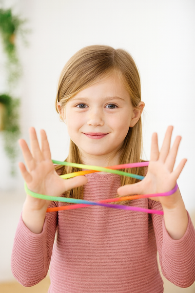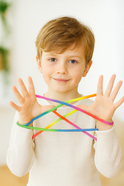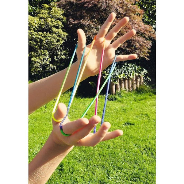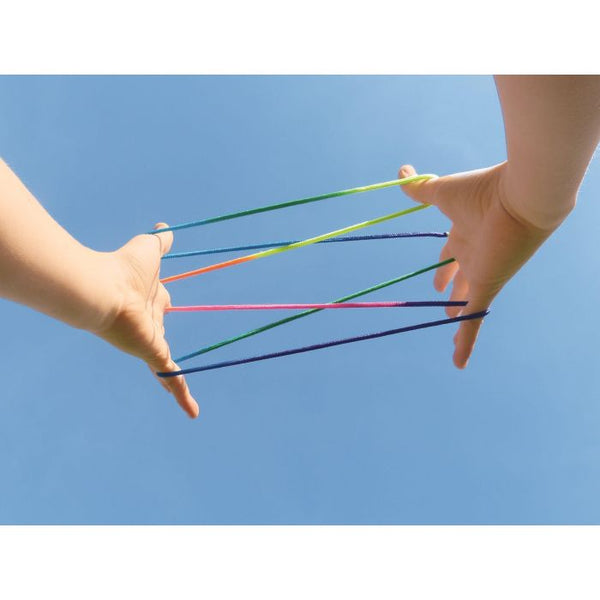 Maak je eigen touw figuurtjes! Meerkleurig lang touw van ca 187 cm. Om eindeloos mooie werken om je vingers te maken. Incl. handleiding.